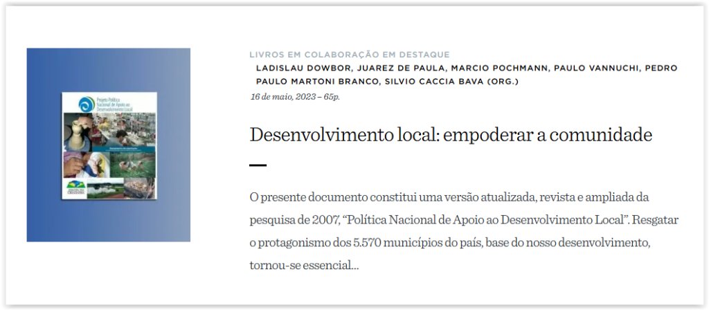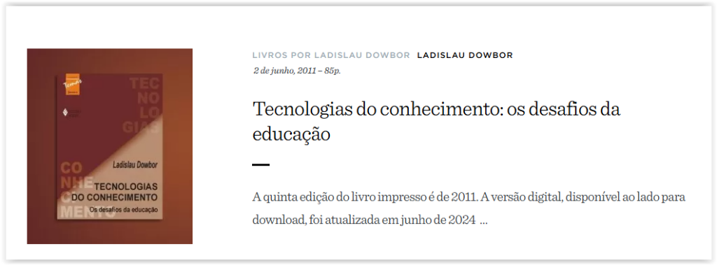 Obras citadas por Ladislau Dowbor, na sequência em que foram mencionadas; todas estão disponíveis para download em www.dowbor.org.